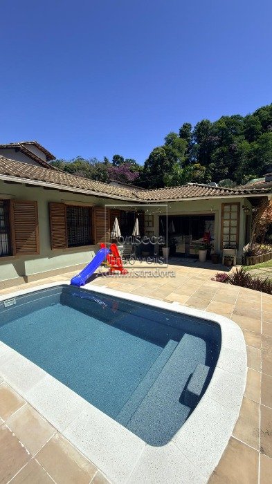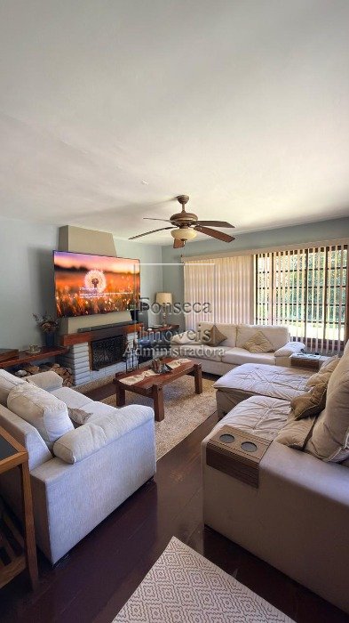 ÓTIMO IMÓVEL AMPLO, TODO REFORMADO, PRONTO PARA MORAR E COM LAZER COMPLETO EM MEIO A NATUREZA - Composto por hall de entrada, sala espaçosa em 2 ambientes com lareira, cozinha ampla com armários planejados, lavabo, 4 quartos todos com armários, sendo 1 deles suíte, banheiro social, área de serviço espaçosa com armários para melhor organização e com banheiro de apoio, garagem coberta para até 3 carros, com fechamento em toldo, podendo ser utilizada também como espaço para festas.