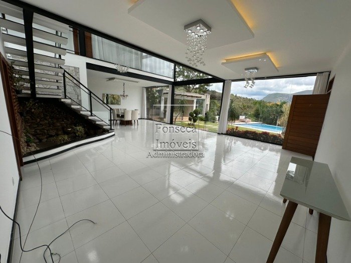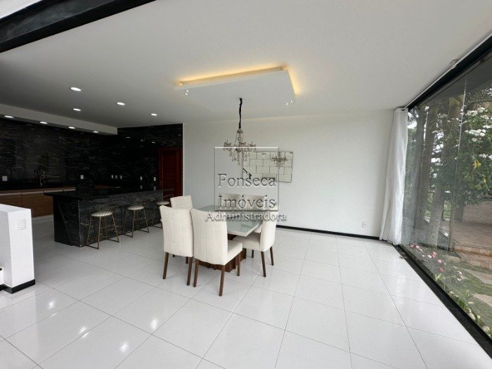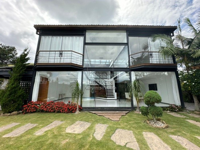 Casa com design moderno e com vista espetacular, composta de amplo salão envidraçado em 02 ambientes com pé direito alto, varanda, lavabo, ampla cozinha moderna e integrada ao living, despensa, hall íntimo, 04 suítes (com closet e sacada - sendo 1 master com hidro), escritório, área de serviço, banheiro externo e garagem. Terreno com área de 2.150m² com lindo jardim com paisagismo e gramado. Área de 500m² construídos.