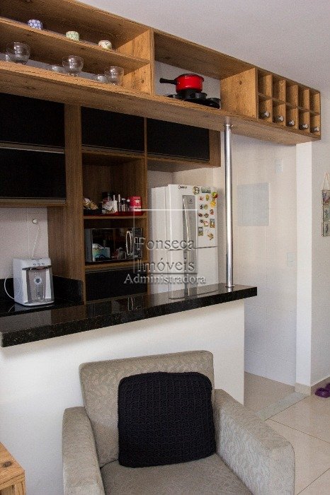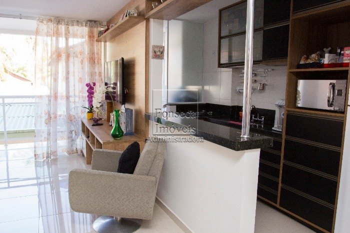 Apartamento mobiliado composto de sala de estar em 2 ambientes com cozinha americana com armários planejados, adega, lavabo, varanda, 02 quartos com armários (sendo 1 suíte), banheiro social, área de serviço e vaga de garagem. Área de 77,04m².